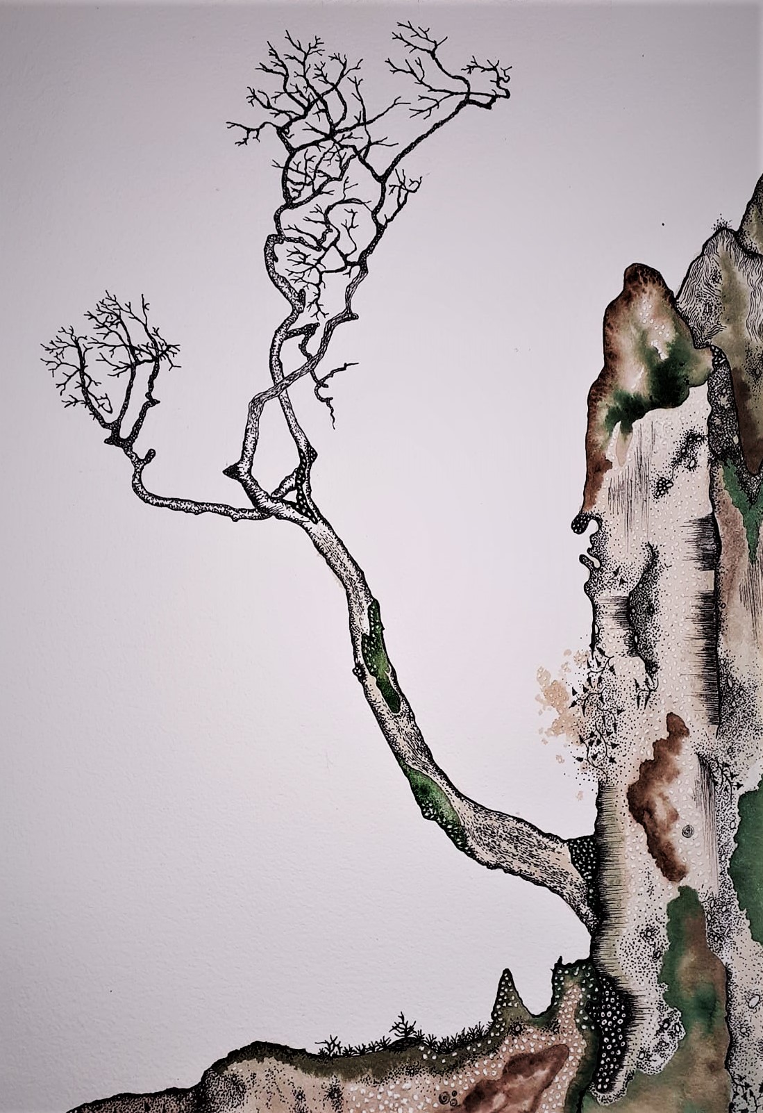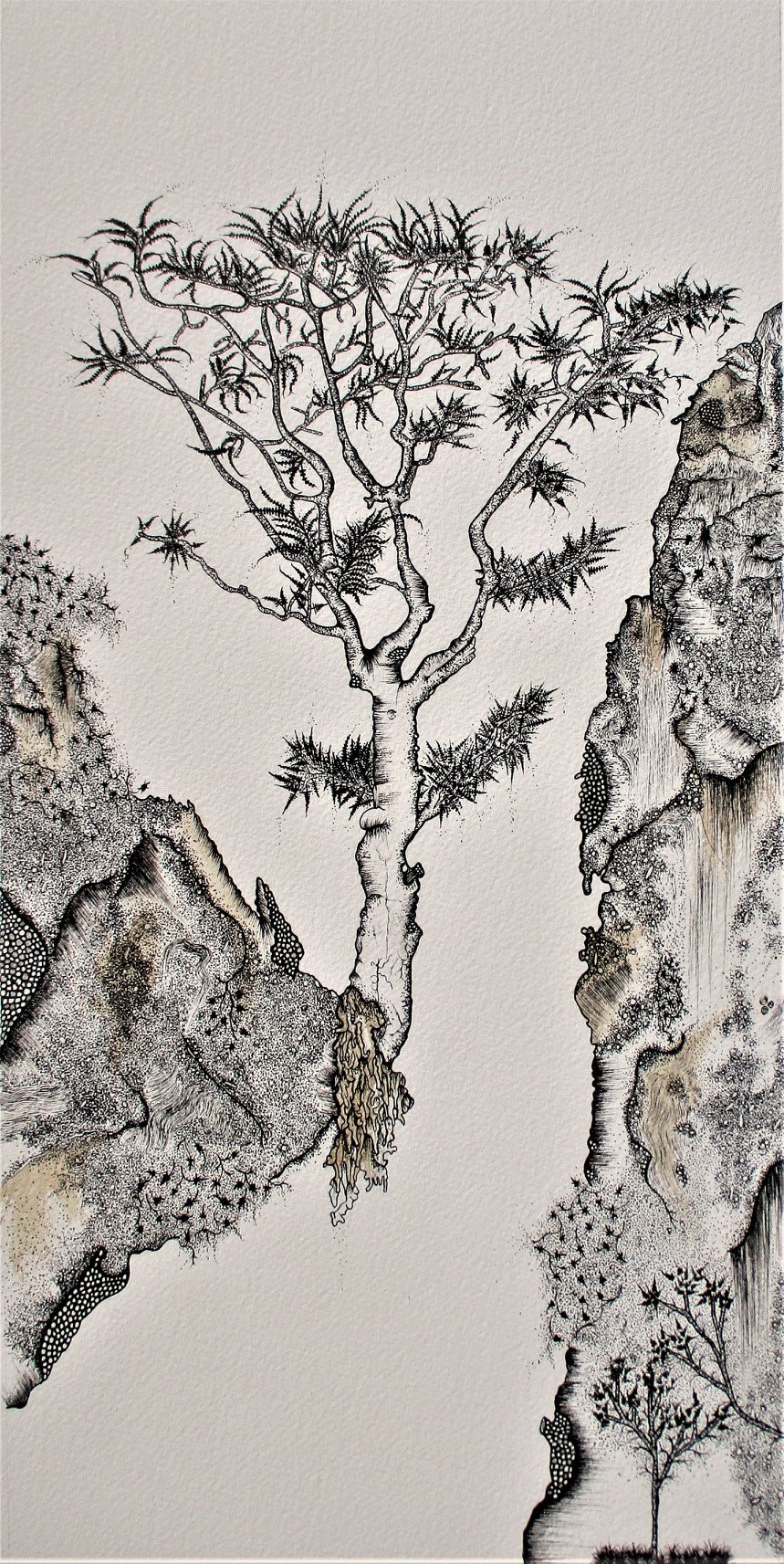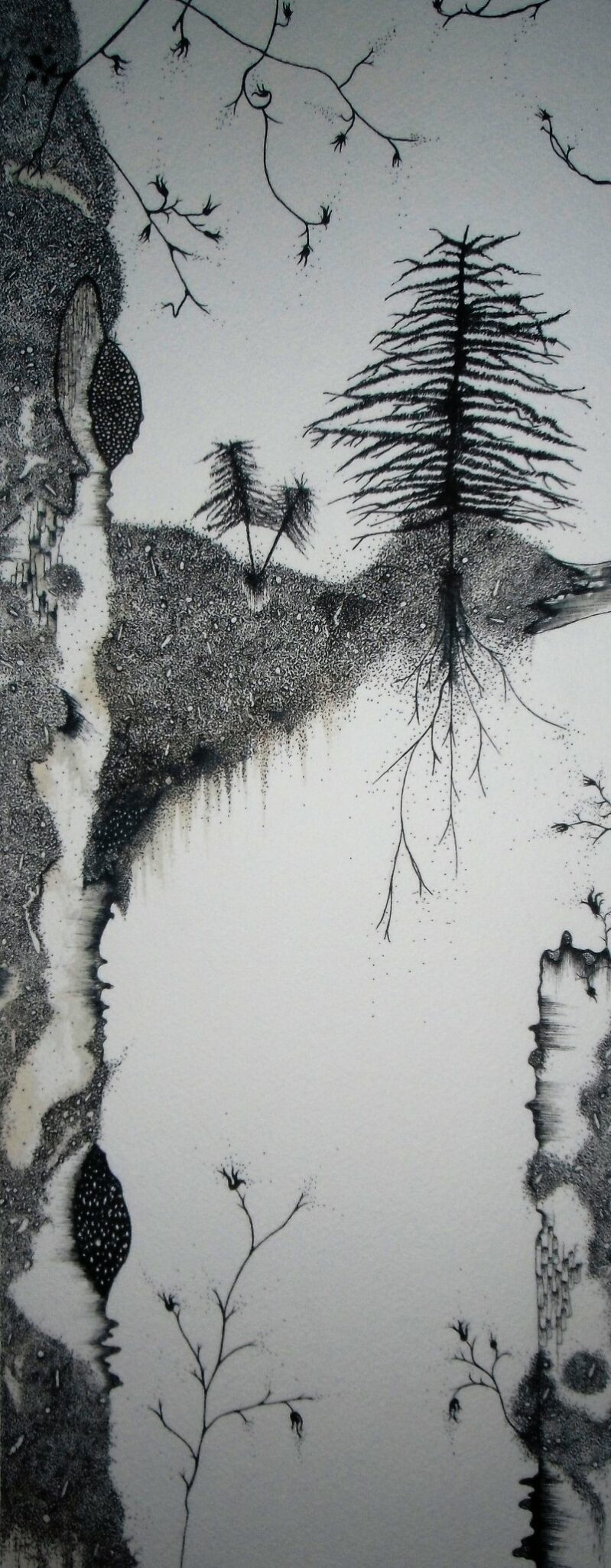 Ou portraits végétalisés de nos postures humaines. Dessins réalisés au fusain, au crayon, au feutre et à l’encre de chine.
